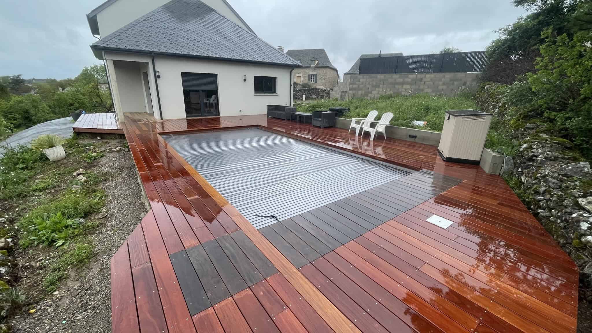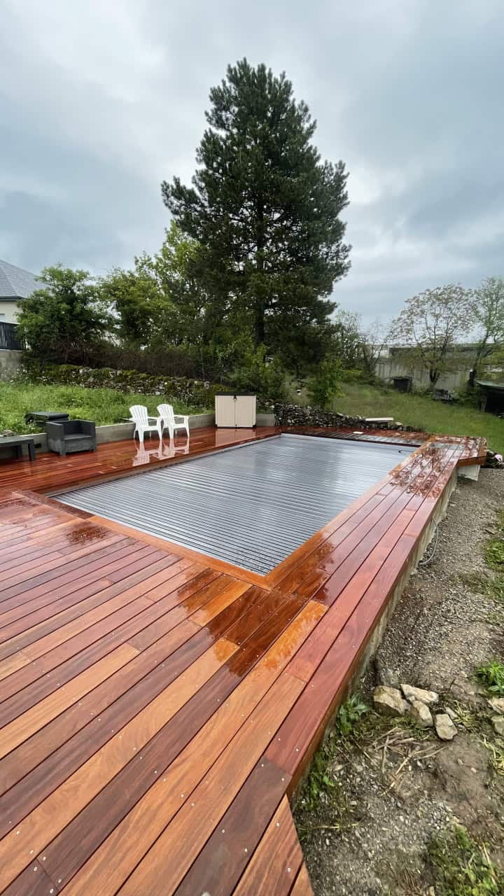 Nous avons réalisé une terrasse en Cumaru d’environ 95 m², conçue pour sublimer les abords d’une piscine et offrir un espace extérieur à la fois esthétique, confortable et durable.