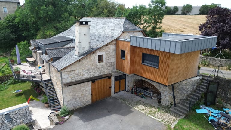 Réalisée en collaboration avec l’Atelier MICARRE, cette extension vient s’intégrer harmonieusement à une maison en pierre du pays, en apportant une touche contemporaine forte.